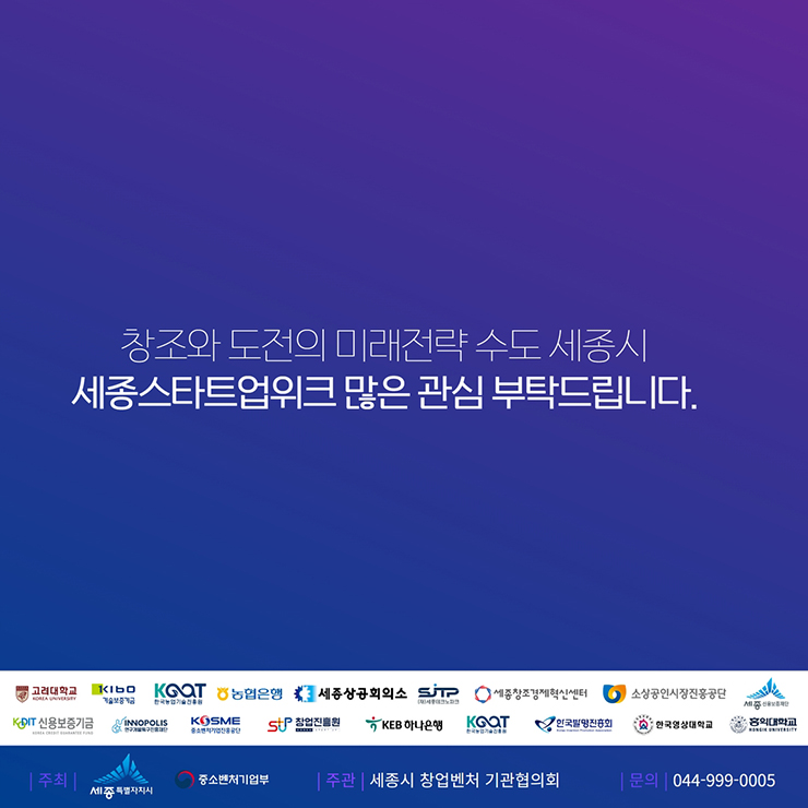 창조와 도전의 미래전략 수도 세종시. 세종 스타트업 위크 많은 관심 부탁드립니다.